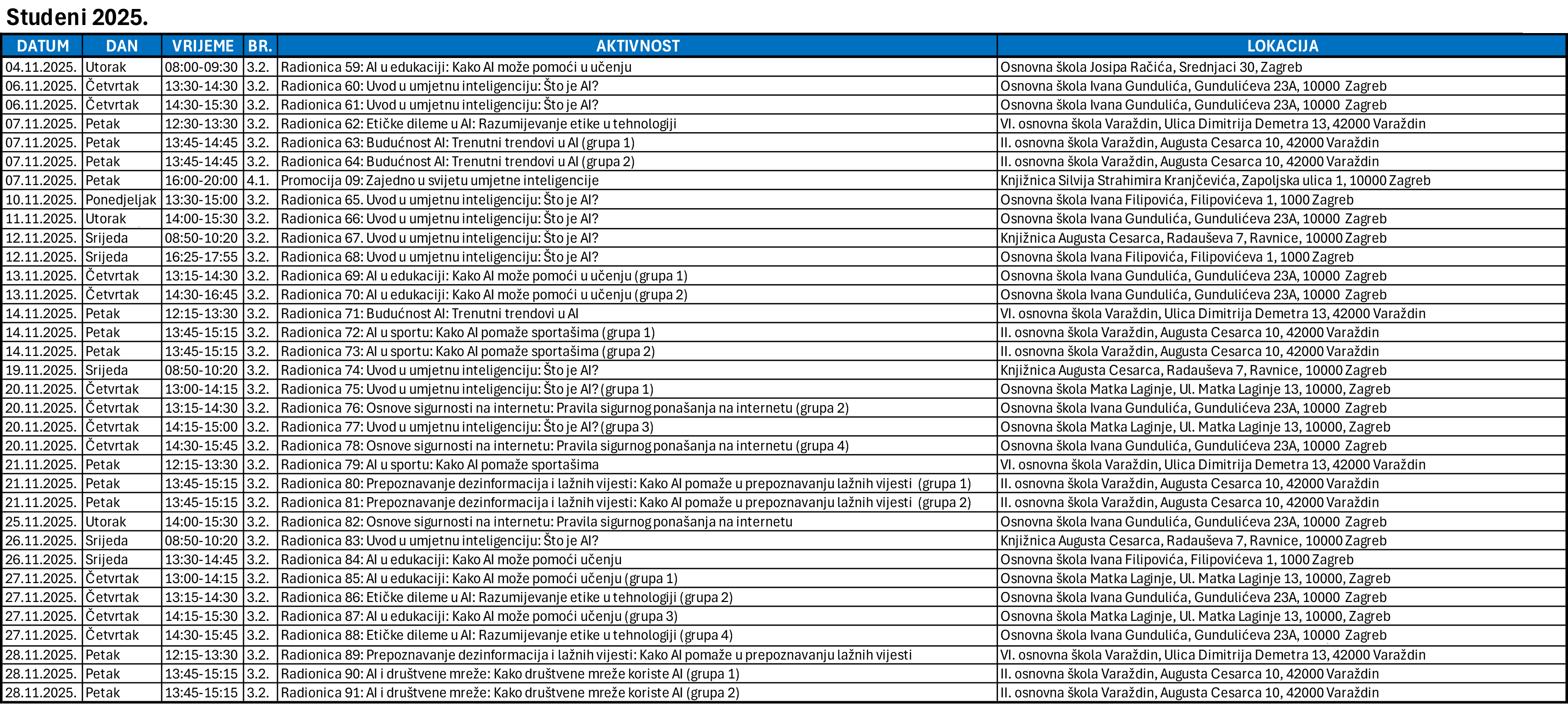 AKTIVNOSTI su u potpunosti besplatne i otvorene za javnost, a njihov raspored (termine i lokacije) možete pogledati na kalendaru.