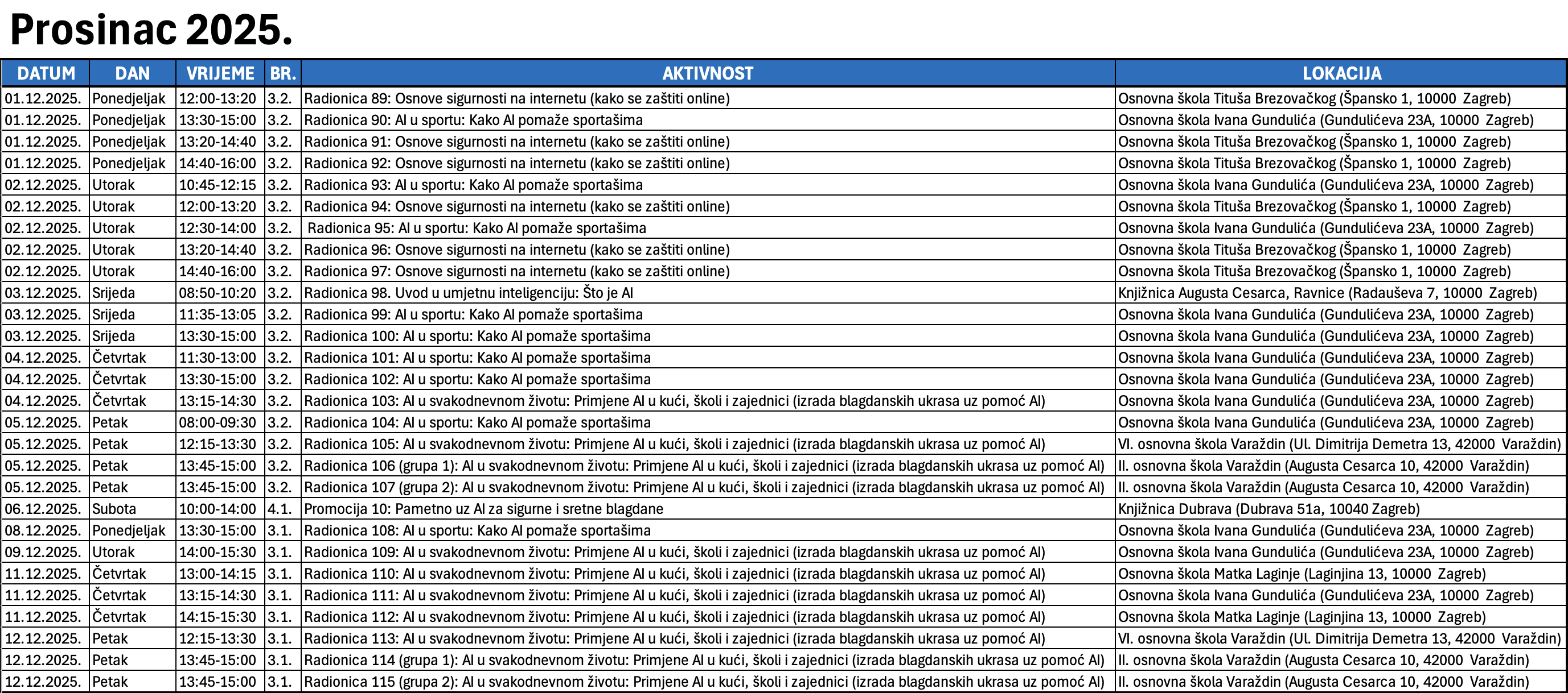 AKTIVNOSTI su u potpunosti besplatne i otvorene za javnost, a njihov raspored (termine i lokacije) možete pogledati na kalendaru.